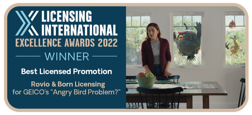 Our Director, David Born, and Senior Licensing Executive, Amber Cheung, accepted the award on behalf of all parties. David Born commented: “I’m thrilled to have won this award for the third time and would like to thank everyone who voted for us. This really was a team effort so we’d like to share this award with the Licensee, GEICO, their creative agency, The Martin Agency, and of course the wonderful teams at Rovio Entertainment and IMG who were amazing partners throughout the process.”